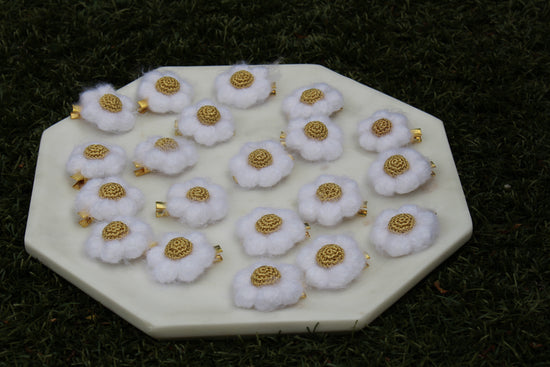 Introducing the Puffy Daisy Clip, a hand-made hair accessory perfect for kids. Add a touch of whimsy to any hairstyle with this puffy clip, sure to make any child feel like a princess. Made with care, this clip is a fun and stylish addition to any accessory collection.