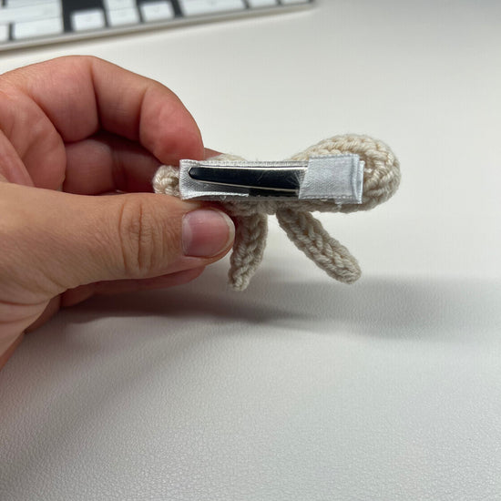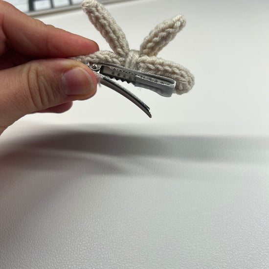 This handmade crochet bow hair clip adds the perfect touch of charm to your little one’s look. Crafted with soft cotton-acrylic yarn and secured to a sturdy silver alligator clip, it’s both gentle and stylish—ideal for babies, toddlers, and girls.